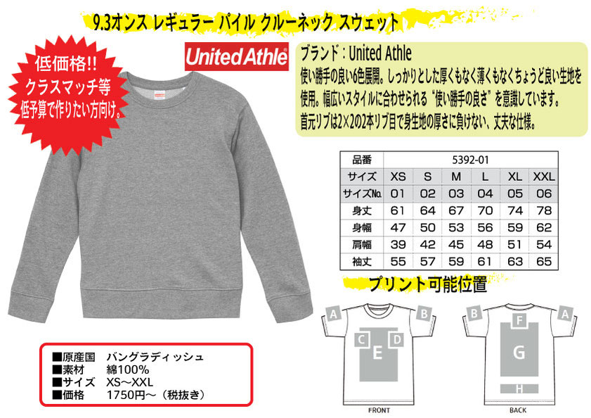 9.3オンス レギュラー パイル クルーネック スウェットお見積りフォーム